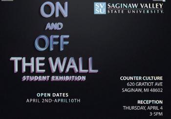 SVSU Art Department students enrolled in Art 480, Arts Management and Safety BFA Seminar for Fine Art students, curated and coordinated this exhibition as an assignment for their class. Students are also required for the set up and tear down of their own artwork. The course acts as a capstone, and is required for graduation. “On and Off the Wall” is an exhibition that showcases all different media, both ‘on’ and ‘off’ the walls. Media showcased includes design, photography, ceramics, drawings, paintings, and more.
