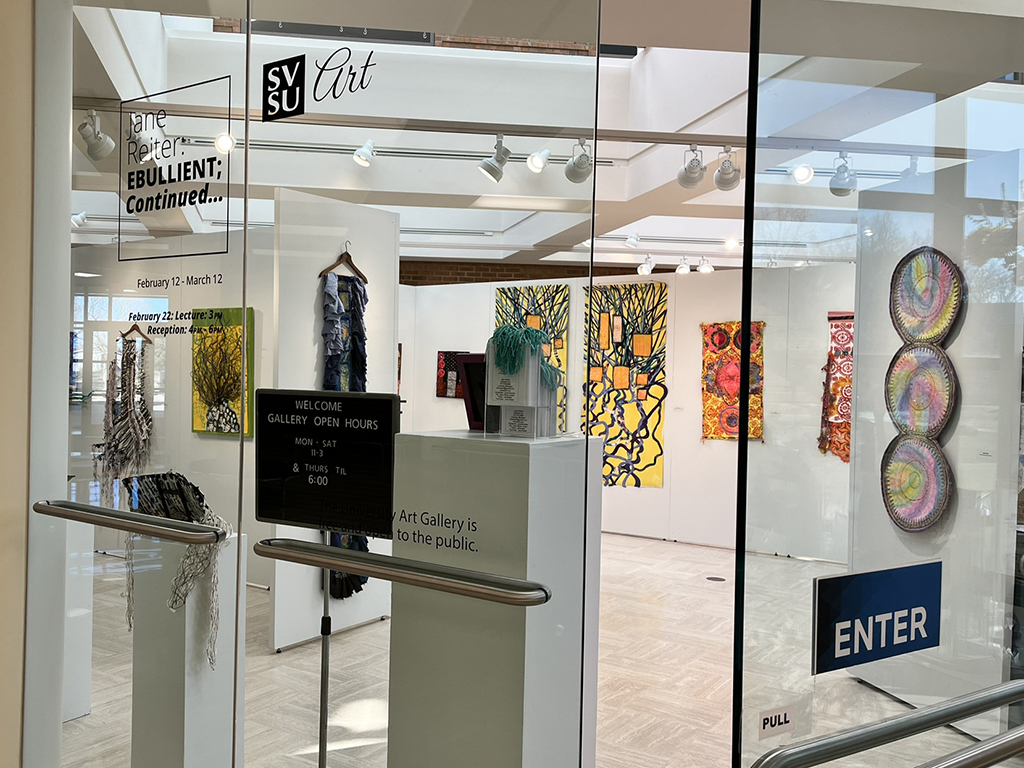 Reiter began Ebullient as a solo art exhibition in November, 2021, at the Mott Community College in Flint. As a body of work, Ebullient still stands full of optimism, perseverance, creative energy and enthusiasm. In January, 2023, she suffered a devasting personal loss and art making embodies, for her, carrying on due to loss. Ebullient currently, in 2024, continues to focus on moving forward in growth and colorful resilience. She offers up confidence and hope that in spite of our great losses, selective joys exist in our lives, if we carefully discern their nuances.