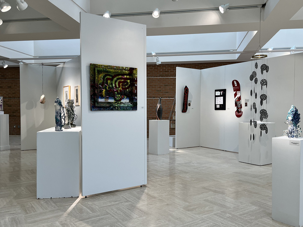 This exhibition features the work of SVSU Full-time Faculty Shaun Bangert (Digital Photography), Phillip Hanson (Painting), Blake Johnson (Digital Applications), Josh Kirby (Design Applications) and Adjunct Faculty Lark Allen (Printmaking/sculpture), Tamar Aldrich (Ceramics), Jeff Carpenter (Digital Photography), Michael Crawford (Digital applications), Talli Holowka (Glass), David Littell (Digital Painting), Andrea Ondish (Encaustic), Patricia Wintermeyer (Sculpture) along with gallery coordinator and adjunct instructor Sara Clark (Ceramics). The works span time and media and are indicative of the breadth of knowledge the faculty shares with our students.