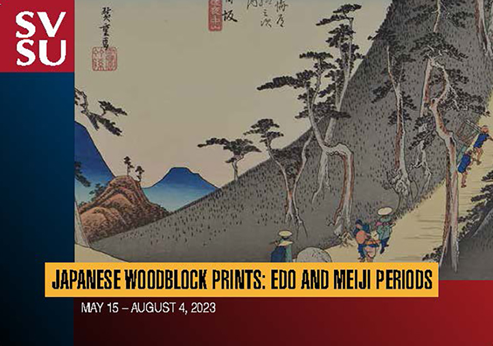 This exhibit on display in the University Art Gallery at Saginaw Valley State University is a collection of Japanese woodblock prints of the Edo and Meiji periods donated by Dr. Louis W. Doll, to the University Art Gallery.