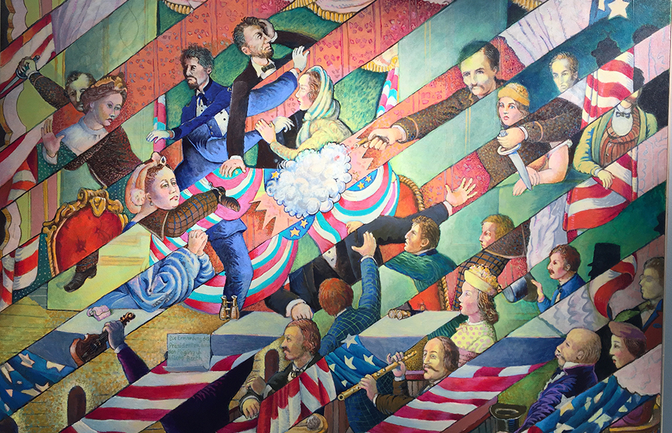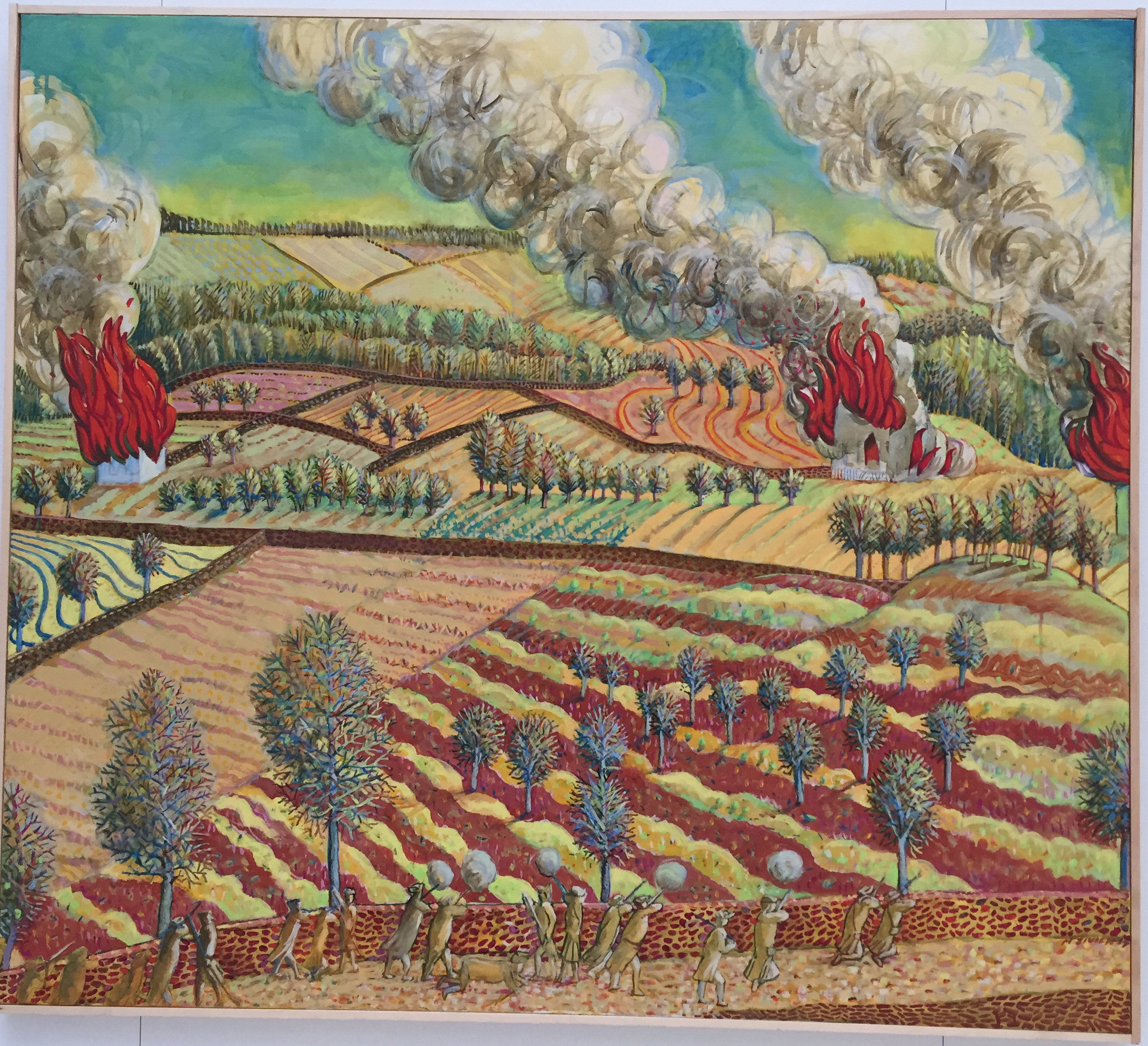 The artworks in this show are Matthew Zivich’s most recent paintings with some drawings. The intention for these pieces is to creatively illustrate various images of historical events that have stayed in the artist’s mind for no apparent reason. The images are all appropriated from various sources, and that gives Professor Zivich a chance to change the imagery into more ambiguous settings with suggested meanings. Some images are popular and may eventually be recognized. Professor Zivich has been unabashedly influenced by Peter Saul, David Hockney, and Malcolm Morley, mostly because of their subjects and sardonic humor. Professor Zivich is a tenured faculty member teaching painting, drawing and sculpture in the SVSU Department of Art
