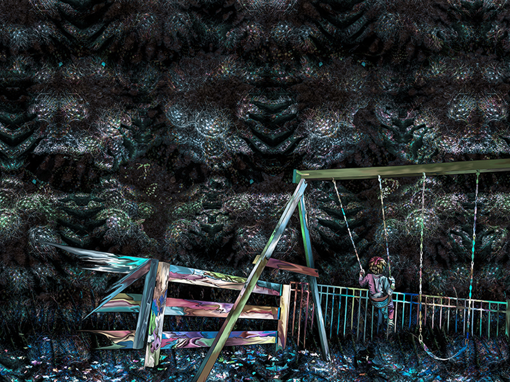 The daily disciplined approach to VanBenschoten’s work is rooted in traditional leanings toward a love of paint and materials. Incorporating digital media with traditional techniques lends itself to the postmodern mixing of memes with historic undertones as he explores the relationship of figure to environment with humor, investigation and drama. Van Benschoten is a nationally and internationally exhibiting mixed media artist educator residing in Cincinnati OH. Learn more about Elijah at his website.