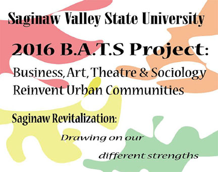 2016 B.A.T.S. Project: Business, Art, Theatre and Sociology Reinvent Urban Communities presentation, “SaginawRevitalization: Drawing On Our Different Strengths” was held on Thursday April 21 at the Dow Event Center Red Room.