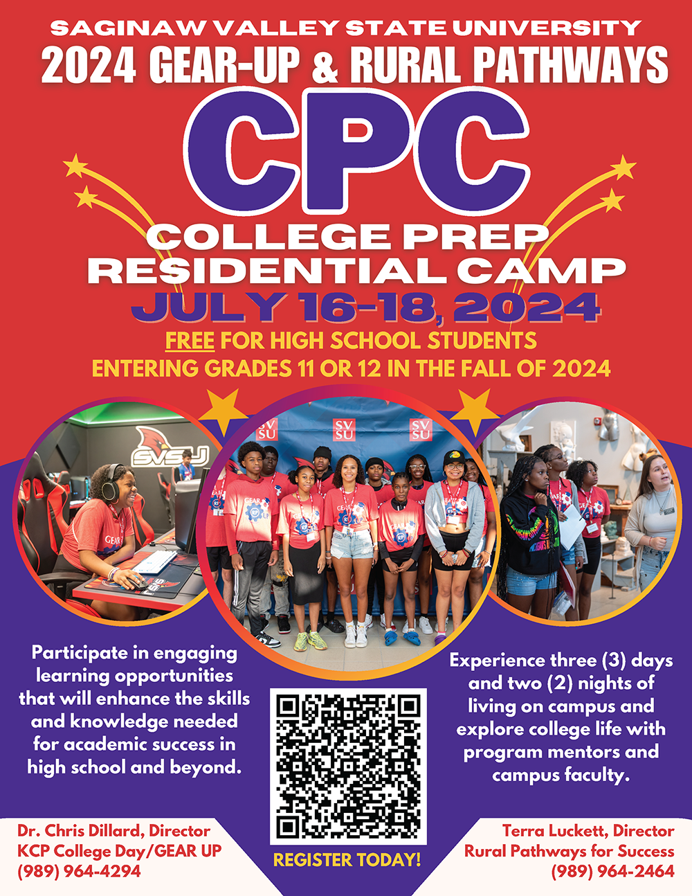 Dr. Christina Dillard-Jackson, Director SVSU MI-GEAR UP/KCP College Day 7400 Bay Road - Wickes 223, University Center, MI 48710 cldillar@svsu.edu (989) 964-4294