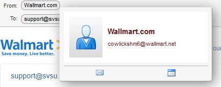 - If you hover over the From address - you'll see not only is Walmart misspelled (has two L's), and the actual address is poorly named and even sometimes has a different extension (.com, .net, .org).