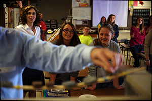 The Dow Corning Foundation/SVSU STEM Community Partnership also connected Martin and her class with Dan Hinterman, an engineering and services manager at Dow Corning. Hinterman began visiting Martin's classes on a monthly basis in the fall, leading engineering-based activities while discussing the STEM industry with students.