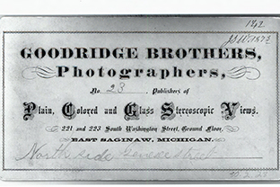 Jezierski, who retired in 2006 as an SVSU professor of history, recognized the power of the Goodridge brothers’ legacy almost immediately upon arriving in the region in 1970 to begin his career with the faculty. While teaching and researching Michigan history, he was exposed to images of Saginaw and its people, dating back to the community’s booming white pine lumber industry days. Many of those pictures were credited to the Goodridge brothers, who successfully operated as professional photographers from 1847 to 1922.