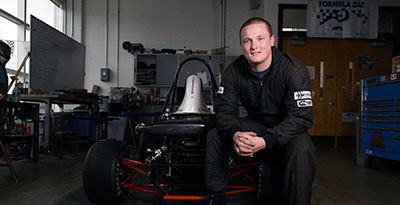 The experience provided Fullerton with a taste of life as an engineer. Fast forward about one year: Fullerton, attending an orientation session at SVSU, where he initially signed up as an exercise science major, watched a presentation by the adviser for the university’s Indy-style competitive race team. Brooks Byam, professor of mechanical engineering, was detailing the successful history of SVSU’s Cardinal Formula Racing program.