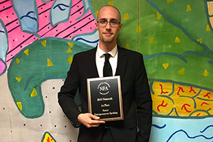 Dan Visnovsky, a political science major from Sparta and a member of SVSU's forensics team, qualified to compete against the best U.S. college talent at the National Forensic Association Tournament April 18-22 in Santa Ana, California. A panel of judges at the public speaking-based competition crowned him the first-place award recipient in the novice category of extemporaneous speaking, which featured students who had participated in fewer than six college forensics competitions.