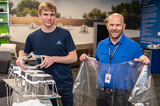 Both alumni of SVSU’s mechanical engineering program – Gilbert and Schroeder graduated in 2007 and 2018, respectively – credit their experience at the university in part for helping them tackle the challenge. They say SVSU faculty members equipped them with the knowledge and initiative to solve problems requiring an outside-the-box approach.