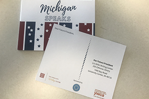 “We’re excited to be a part of the postcard campaign,” said Moira Branigan, executive director of the YWCA Great Lakes Bay Region. “Our hope is everyone who participates is motivated to vote in November. For students – our future voters – it’s an introduction to civic engagement.”