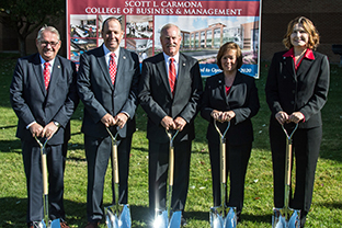 The namesake of the College of Business & Management, Scott Carmona, also spoke at the groundbreaking. In May, the SVSU alumnus and his family pledged the lead gift for the project's fundraising campaign.