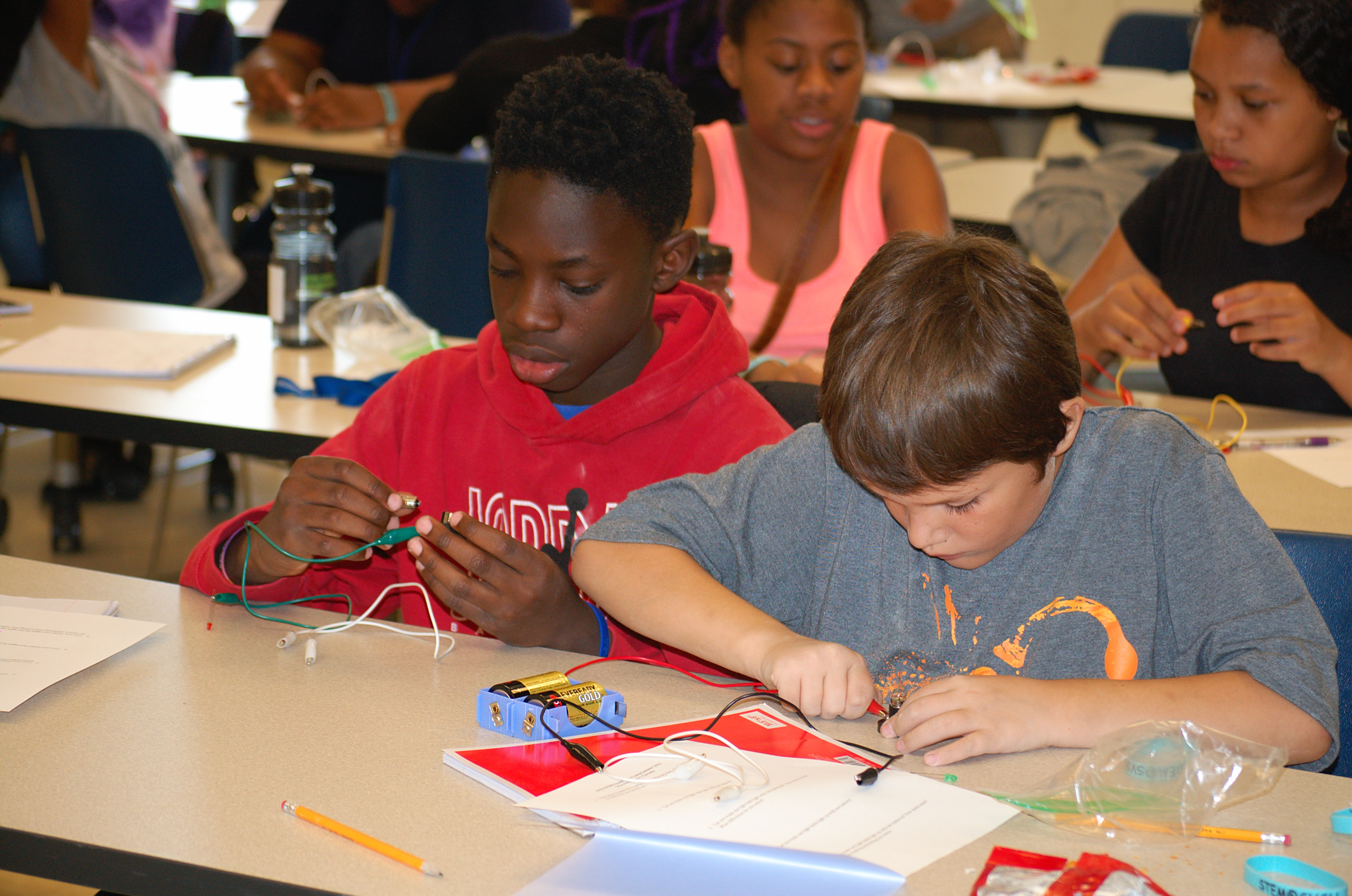 During the STEM Exploration Camp, participants investigated various scientific topics using professional quality equipment. Subjects and equipment utilized included AC and DC electronics, Electron Microscopy, Optical Microscopy & Biological Illustration, Telescopes & Solar, Optics & Spectroscopy, Computer Simulations, Waves & Oscillations, and Structural Design.
