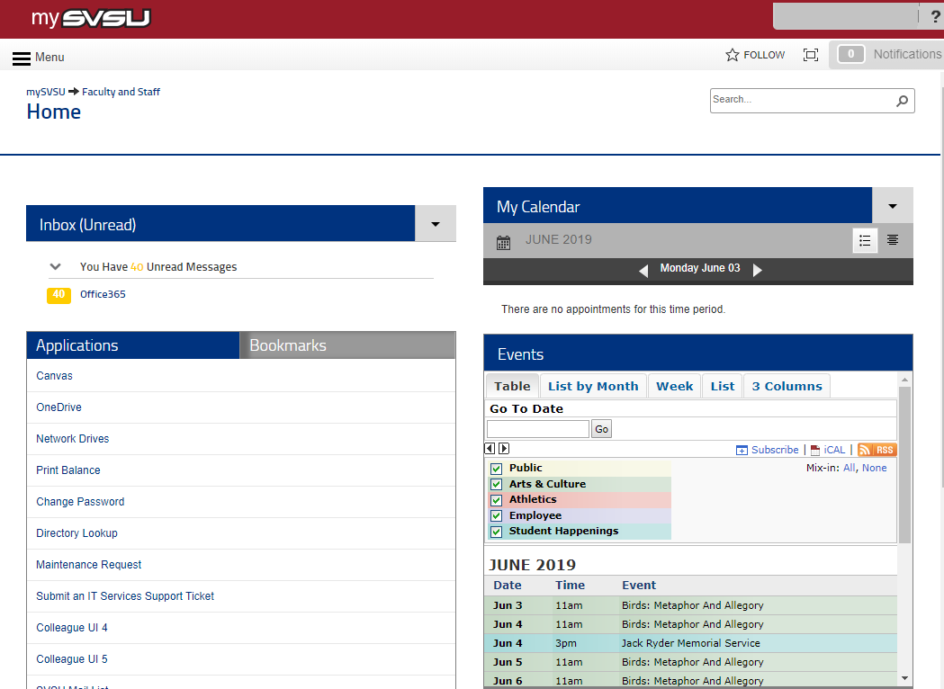 My.svsu.edu is designed to serve as an internal hub, providing relevant academic and administrative communication and resources that engages and enhances collaboration, productivity and operational efficiencies for SVSU students, faculty and staff.